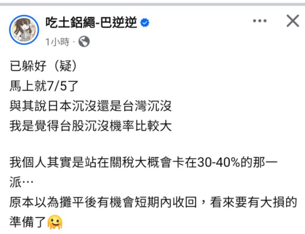 → Hyuui : 無論公布關稅數字是多少,資金風控務必要做好 07/06 01:05