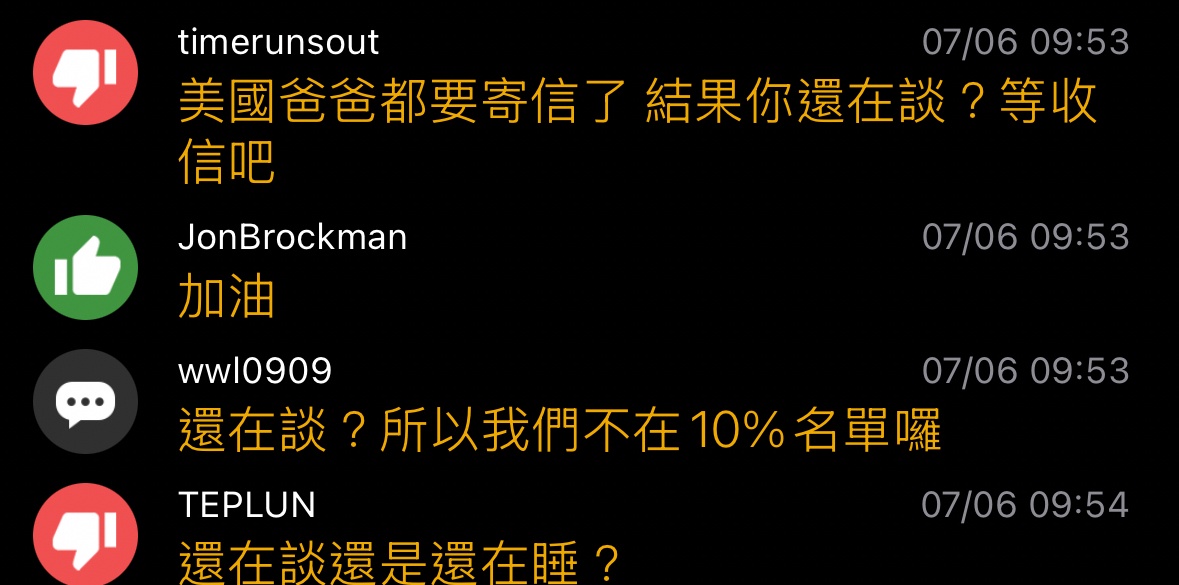 → WaitingTime : 不公布台灣關稅,是想先扣住籌碼談判嗎? 07/06 17:33