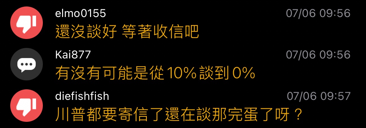 → Feting : 就說各國根本都還沒談好,taco只是想把別人逼急 07/06 15:01