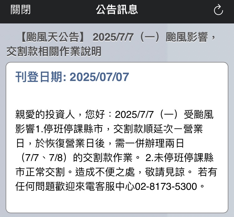 推 miksim : 你開戶的所在地券商放假的話 交割款不會撥下來 07/07 10:38