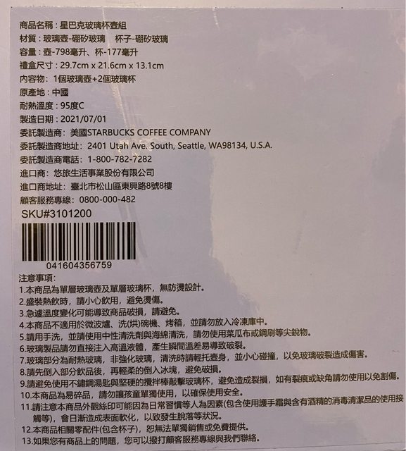 品項:絢彩玻璃杯壺組 原價:$1880 特賣:$1000 數量:1個