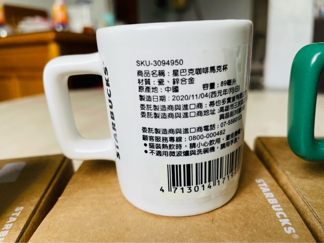 品項:Expresso 金屬女神馬克杯(3oz) 原價:960 特賣:720 數量:3個(黑/白/綠各一)