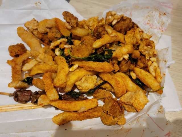 得豪邁,只是部份食材口感一般,椒鹽粉的鹹度又太高。鄰近