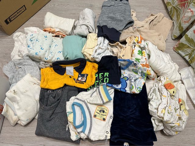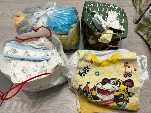 物品名稱:3歲前長短袖衣服、包巾、圍兜兜、襪子等