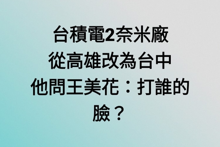 推 whiteheart : 台中不需要台積電,請投資客跟台積電滾蛋。啊?原 08/09 11:54