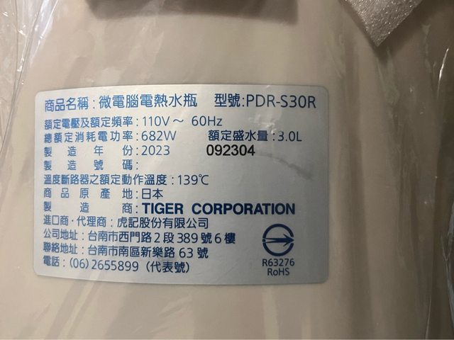 電熱水瓶 (全新)虎牌 電熱水瓶 型號:PDR-S30R 製造日期如圖片 台中市面交 售:2500元