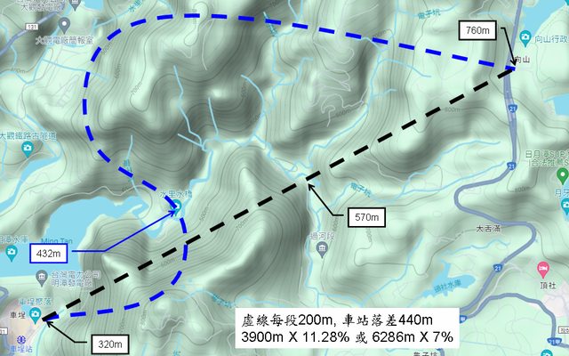 水里站到此處的坡度只有 6%, 本來就在規格內