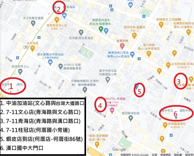 請參考圖片中的6個紅圈地點