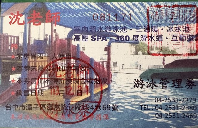 標題[交換] 西屯/潭子沈老師游泳池門票五張