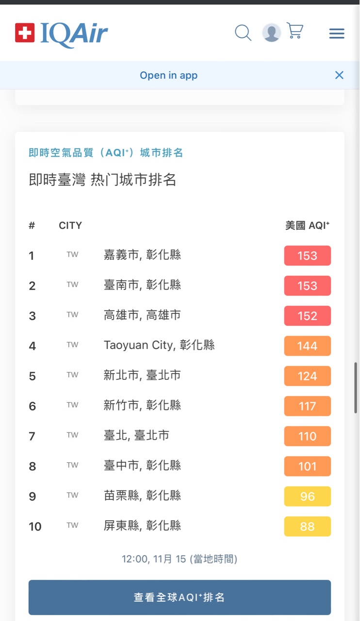 → hydra6716: 你在講啥 今年IQAir報告台灣空品 211.22.29.129 11/15 12:22