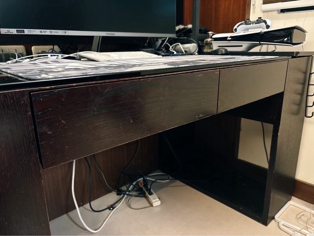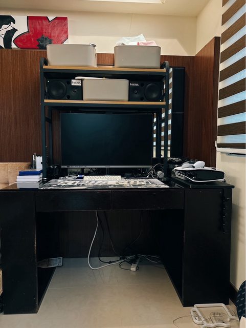 物品名稱:黑色實木書桌(辦公桌)不含照片桌上物品(9成新)