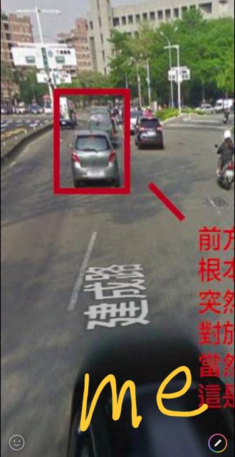 : 我當時就是這樣直直的往前開到銀色車,車道那邊,然後就被檢舉了。