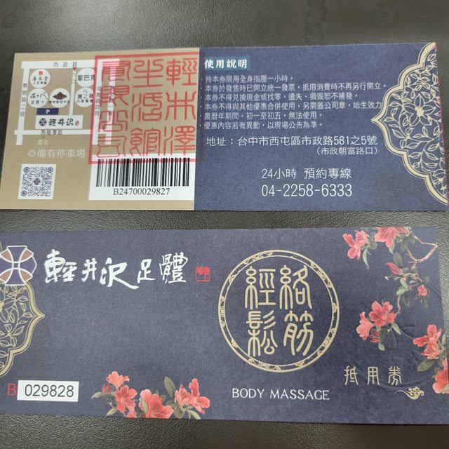 交易項目:輕井沢按摩卷 全身按摩*2張