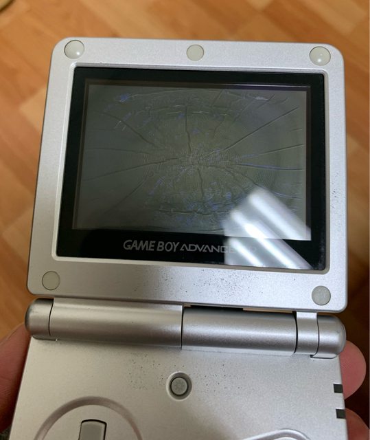 放好久的GBA SP,心血來潮開機充電發現螢幕掛掉(有橢圓裂紋的異常,可能是偏光片壞
