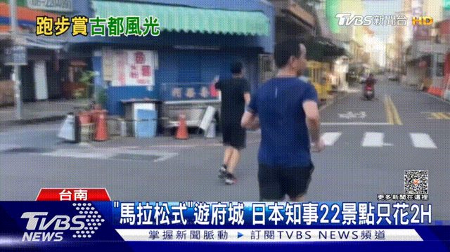 日本山口縣知事,在台南沒有人行道的街道上慢跑
