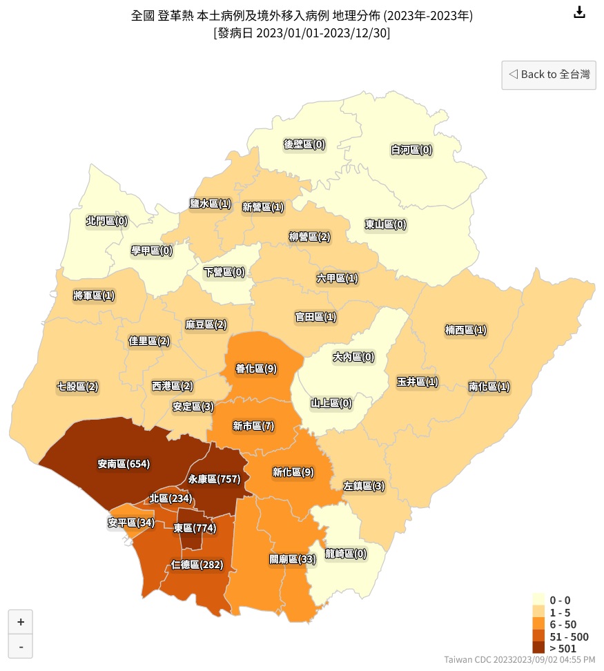 台南市登革熱單日增206例再創新高 全市公告為流行區