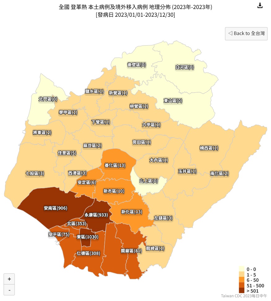 徐全立說,南化區已有登革熱個案,這是經由病媒蚊傳播,
