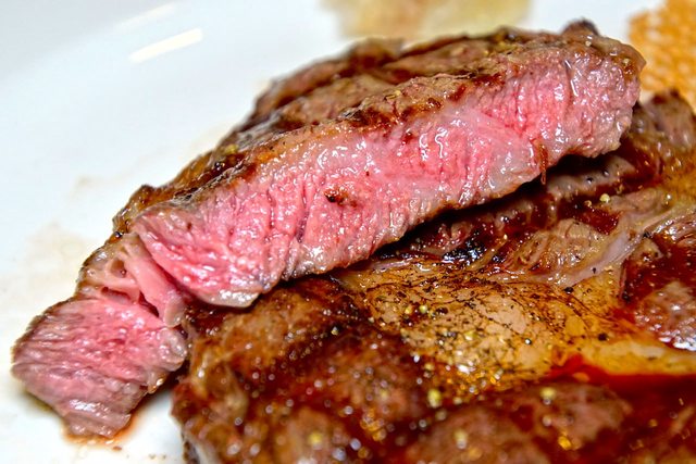 表面煎到帶著點交黃色,切開後滲出的肉汁令人垂涎欲滴。在五分熟的狀態下,吃起來肉