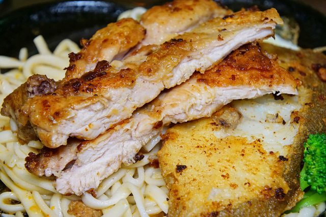 同樣酥脆,肉質也時軟嫩,但就是有一種:「牛排館常見的雞腿排」的錯覺。沒有嘗到如