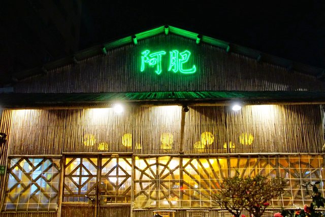 阿肥桶仔雞的外觀以竹子搭建,給人一種懷舊復古的感覺。店內使用黃色的燈籠代替傳統