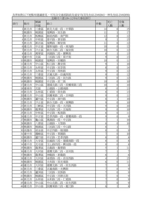 地點篩選係依據109-112年6月行人事故數據,參考運輸研究所相對嚴重度指標及相對頻率