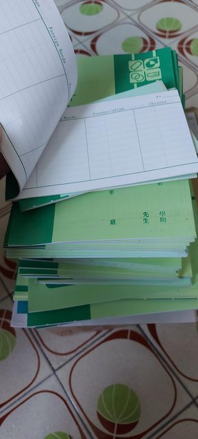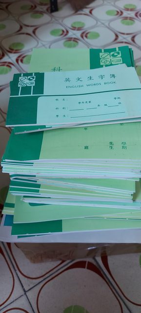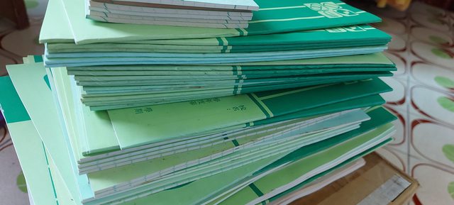 綠色外皮的是以前國中時期作業本,