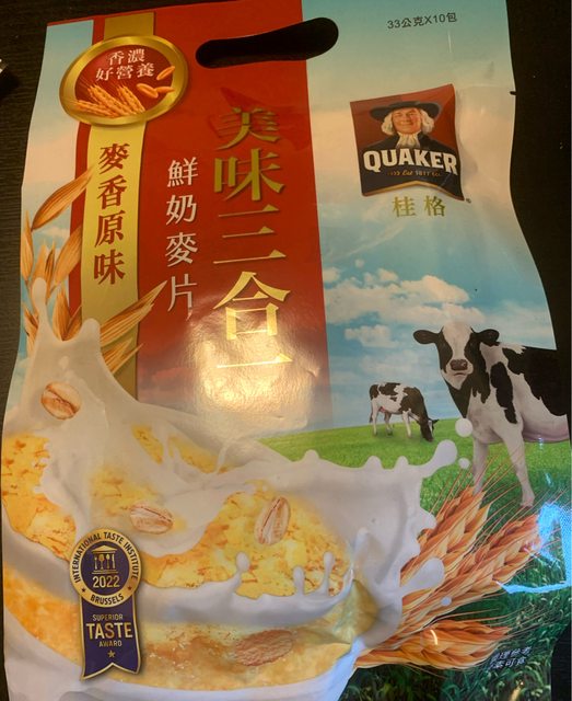 桂格原味鮮奶麥片。一袋100元/裡面有10小包(期限到2024.11.01)