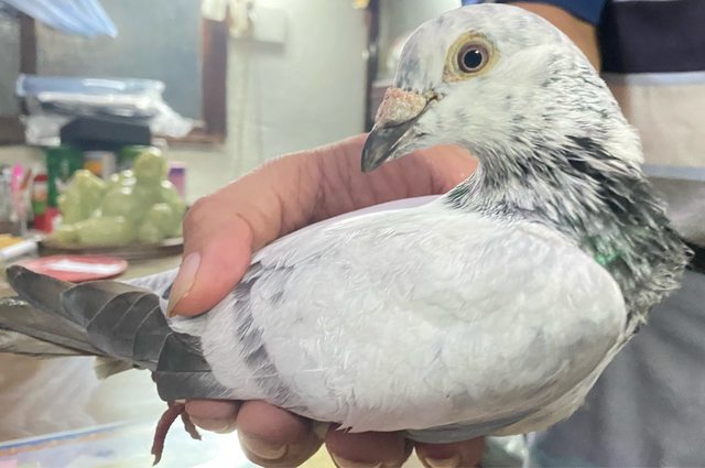 感覺應該是賽鴿,不確定能不能把編號打出來,顏色挺美的,目前鳥情緒很安定