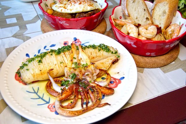 西班牙青醬香煎小卷,是一道光看就讓人垂涎的餐點。這道菜中使用的西班牙青醬,是以