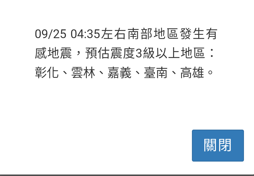 推 NowQmmmmmmmm: 沒地震可以去睡了確定是誤發 09/25 04:53