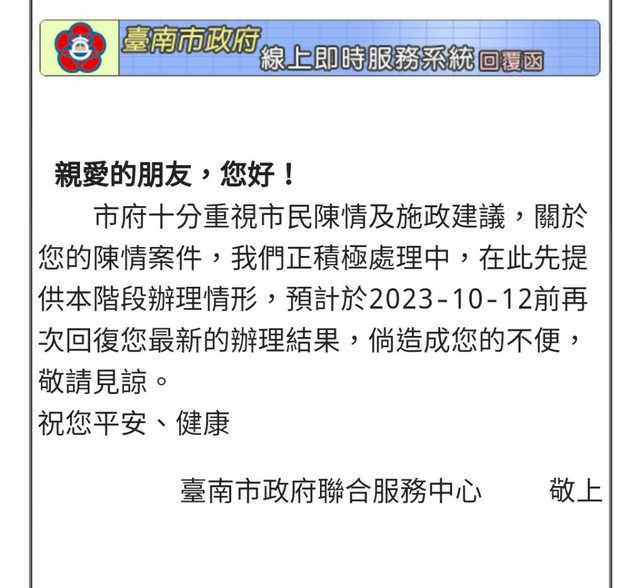 推 jerrykyo: 這陳情系統預設的回覆訊息啊 又不是真 1.34.211.10 09/27 22:18