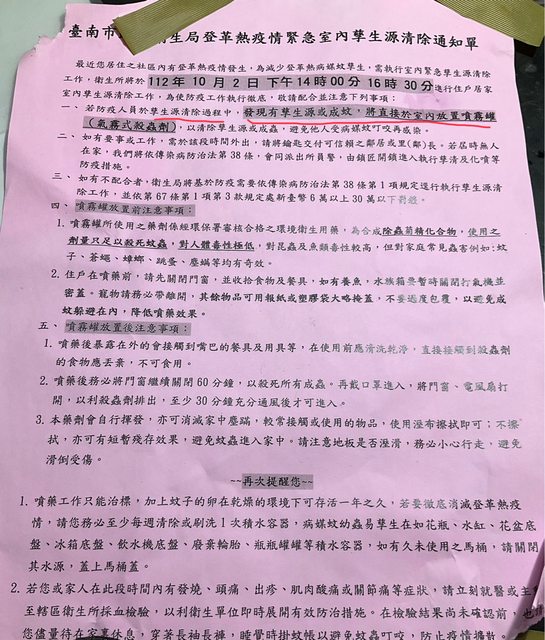 我家喜迎第三次登革熱噴藥通知,這次的單子讓人看不懂是要不要噴藥,還是進入室內檢