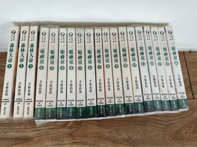 8)物品名稱:手塚治蟲系列 手塚治蟲 ~ 怪醫黑傑克、三眼神童、森林大帝、三個阿道夫、午夜計程車 、原子小金剛 ,六套 , 共79本,文庫版 不拆售 欲售金額:5800 物品照片:
