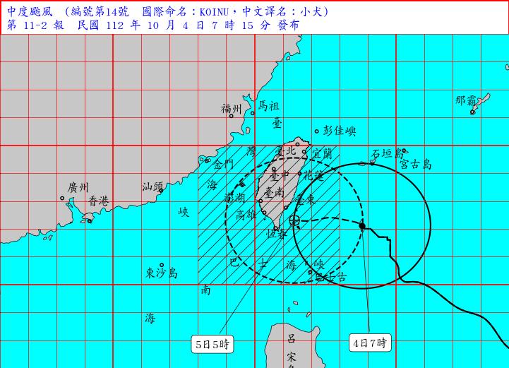 (中央社記者余曉涵台北3日電)颱風小犬逼近,中央氣象