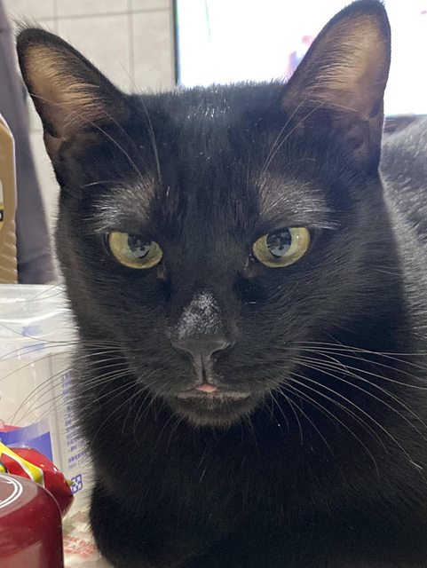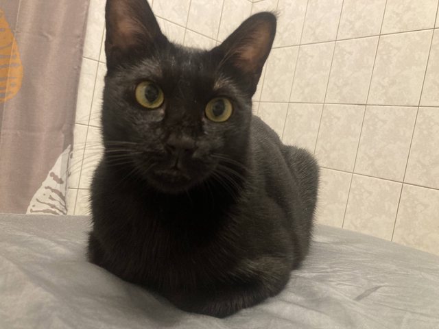 貓咪花色及特徵:黑貓、眉毛微禿、有晶片、約5.5公斤、7歲