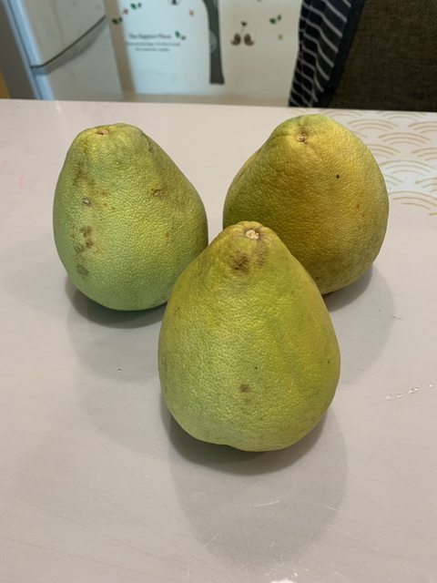 交易物品:柚子三顆,因為家裡水果太多吃不完故贈送,柚子放了有點久,所以可能需要立