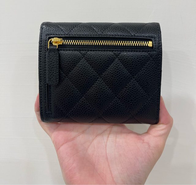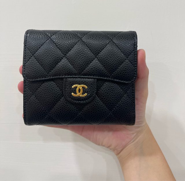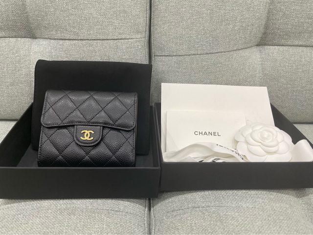 經典Chanel 黑金荔枝皮三折短夾 全新未使用