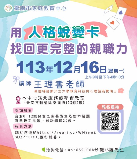 主題:113年親職教育講座-用「人格蛻變卡」找回更完整的親職力