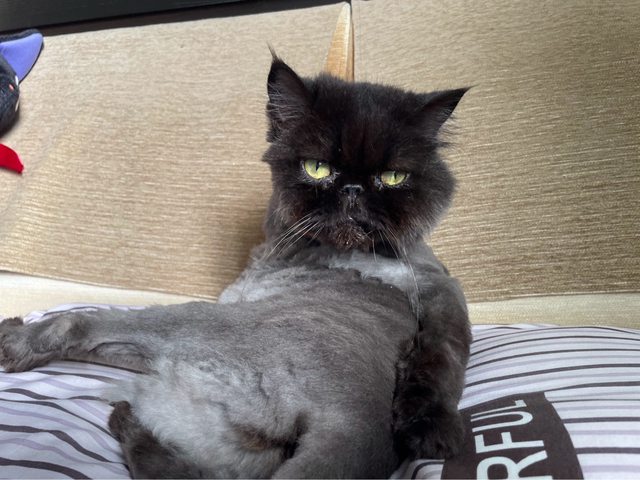 貓咪特徵:黑色母波斯,但剛剃毛,目前短毛