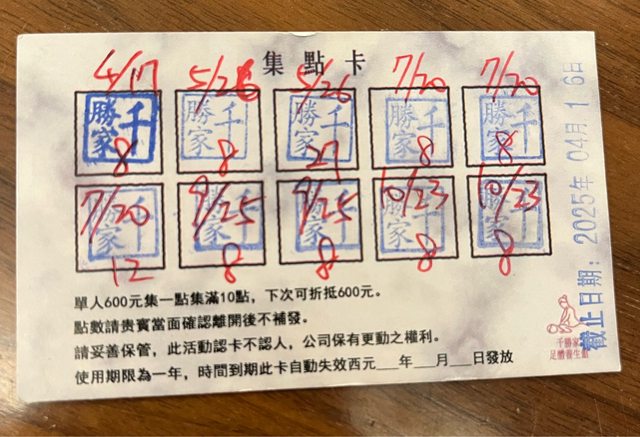 文章最後附上我的集點卡證明不是業配