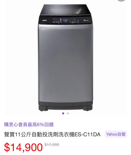 2. 聲寶 11公斤變頻洗衣機 ES-C11DA