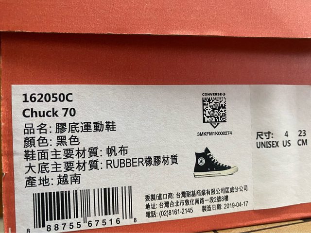 【品 名】: CONVERSE Chuck 70 1970 高統 基本款 帆布鞋 女款 US4/23cm
