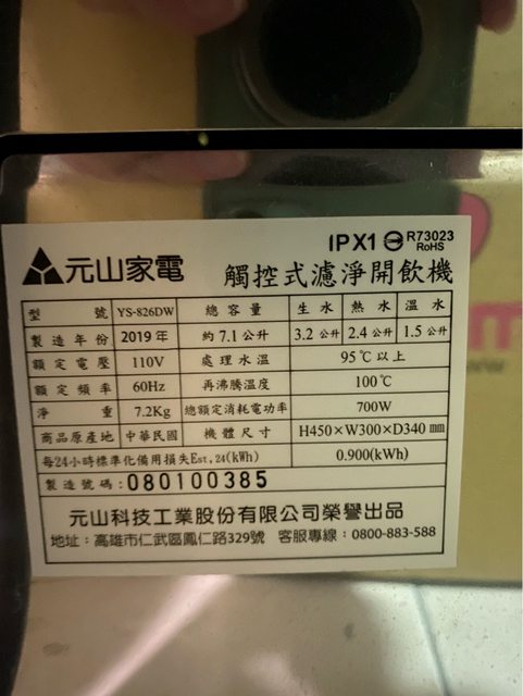 2. 元山牌飲水機,二手,8成新,售2000