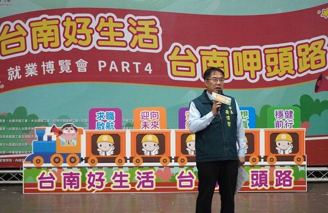 台南市長黃偉哲也到會場為求職者加油打氣,現場也提供履歷健檢、面試模擬、視訊面試