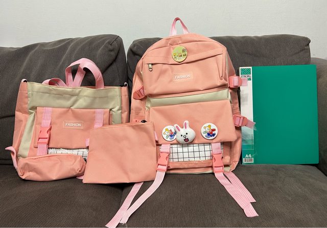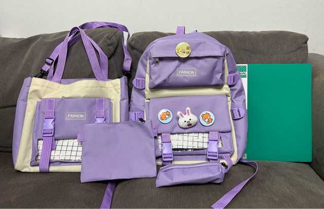 1、後背包+手提袋(附帶子可側背或肩背)+收納袋+筆袋 $300 (來信請註明要紫色還是