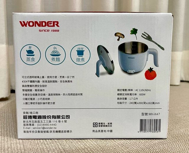 10) WONDER 旺德 1.7L雙層防燙多功能美食鍋 WH-K47 / 450元 / 全新 (售出)