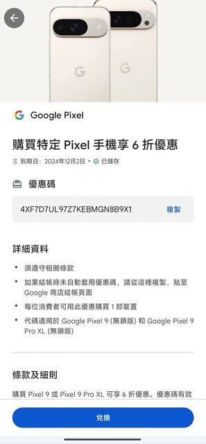 徵求類別: 贈送pixel 9六折券