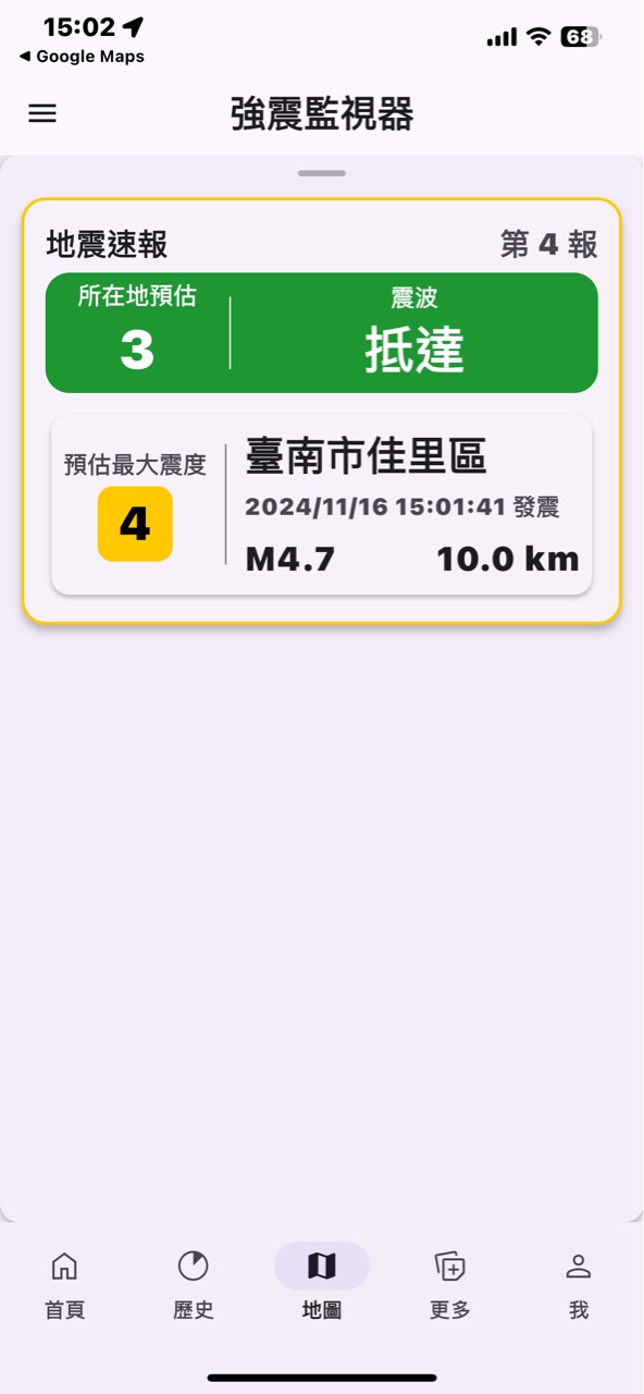 推 vin312789: 預估震度4級理論上要發警報 11/16 15:05