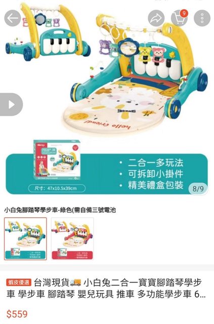 3.腳踏琴學步車:350元(9成新,玩個5次就不玩了)
