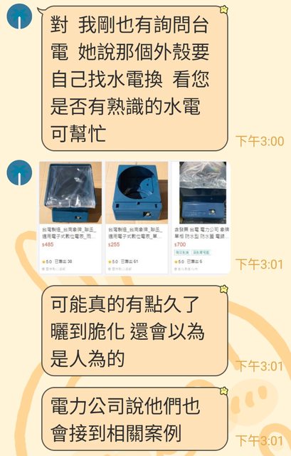 推 kalapon: 換殼 水電行可能得去申請打開鉛封 11/20 18:52